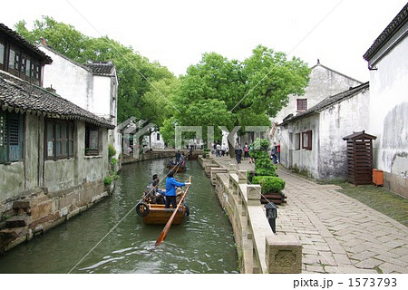 中国 江南六大水郷のひとつ、同里水郷の運河をゆく観光遊覧船