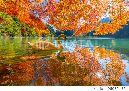 【南アルプス】 伊奈ヶ湖での紅葉と白鳥