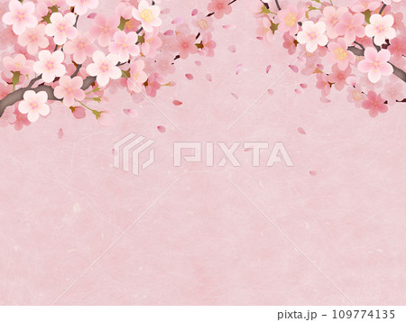 バナー 春 フレーム 桜 さくら サクラ シルエット 水彩 手描き 背景 コピースペース イラスト