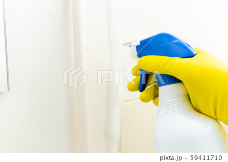 風呂掃除 カビに漂白剤を吹き付ける 塩素系