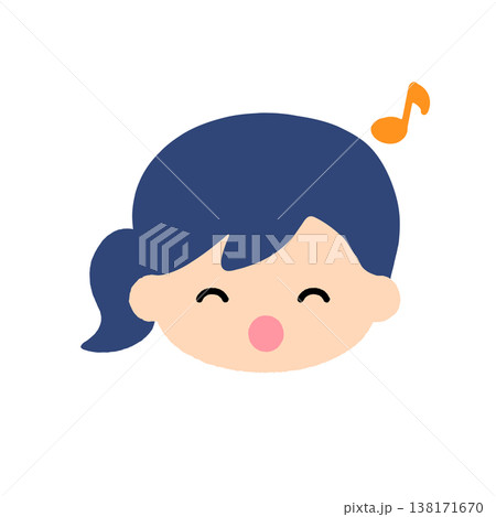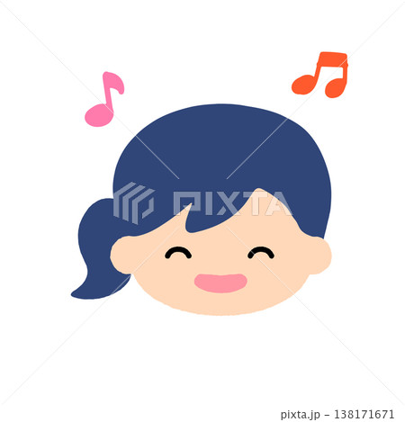 かわいい女の子の笑顔アイコン 音符付きで楽しい表情の子供シンプルイラスト