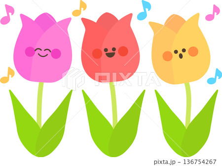 楽しいかわいいチューリップ(赤とピンクと黄色)