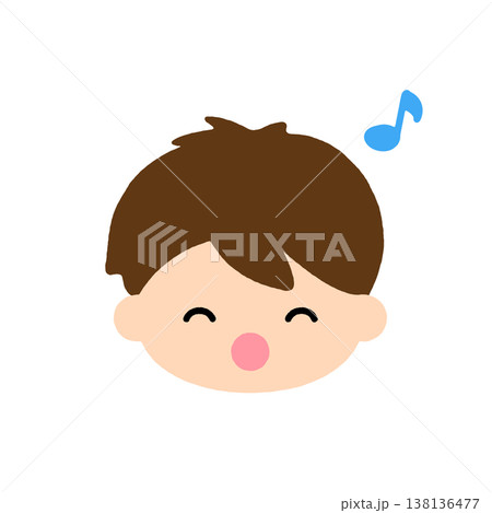 音楽を楽しむ男の子の顔アイコン|歌う子供のかわいいイラスト・シンプルで楽しい表情素材