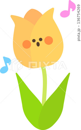 歌を歌っているような表情のついたキャラクター風の音符のイラスト