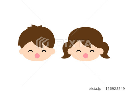 笑顔の子供の顔アイコンセット|男の子と女の子のシンプルでかわいい人物イラスト