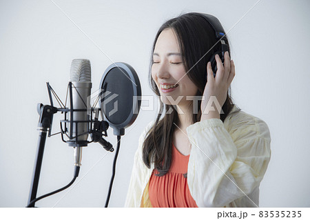 音声配信をする女性のイラスト 歌う SNS 歌ってみた