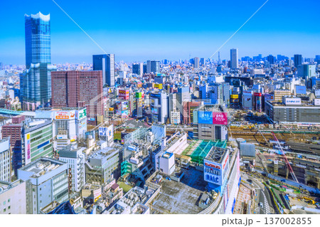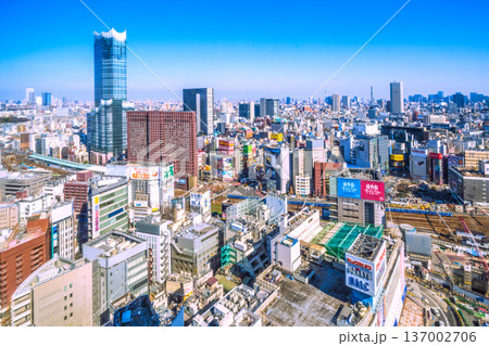 日本の東京都市景観 渋谷駅側から新宿の東急歌舞伎町タワーなどを望む