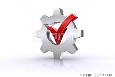 歯車とチェックマーク、設定のチェック完了イメージ