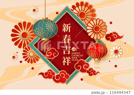 Chinese New Year frame design with lantern.