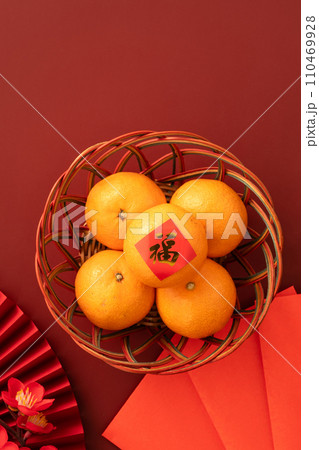 橘子 水果 紅色 背景 農曆新年 過年 紅包 新年 new year concept