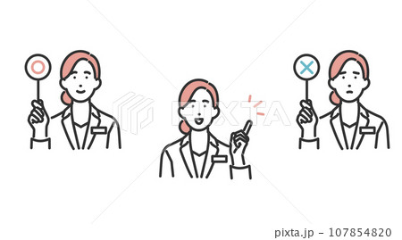 人物 丸とバツの札を持つ女性医師セット
