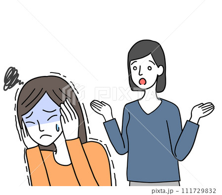 シンプルな人物イラスト 女性議員に問い詰められる男性議員