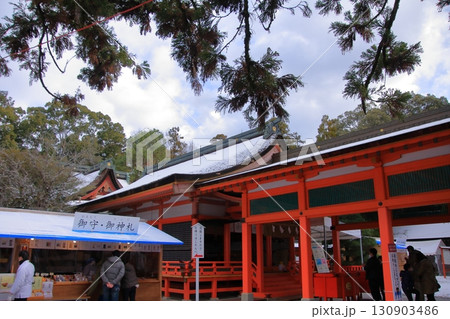 雪化粧の宇倍神社の社号標 鳥取県鳥取市国府町宮下
