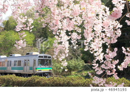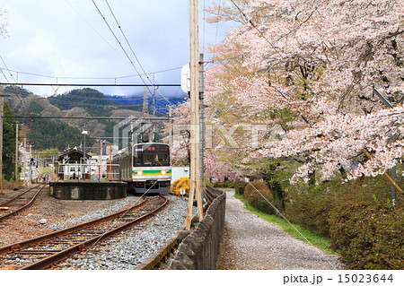 秩父鉄道「桜咲く春の武州日野駅に到着した電車」