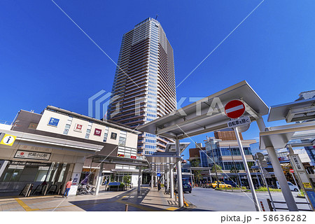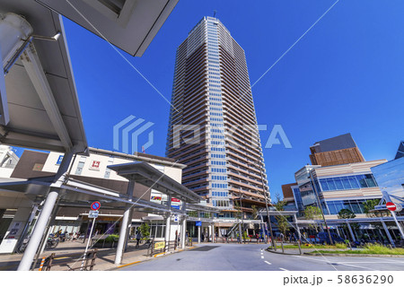 武蔵小山駅 西口前のロータリーと再開発された高層マンション群 東京都品川区