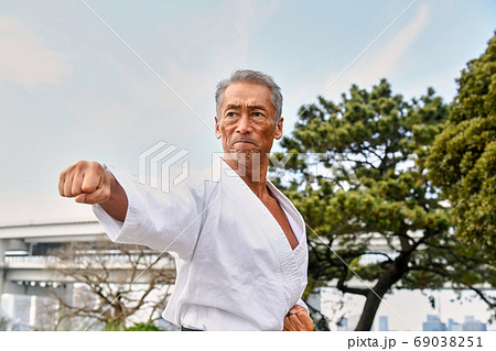 格闘技家 日本人、侍、シニア男性、空手家、武術家、柔道家、極真空手