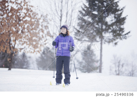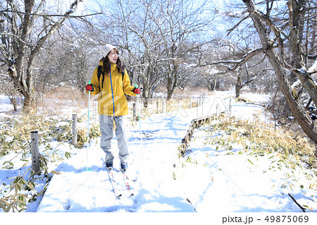 冬のレジャーを楽しむ女性
