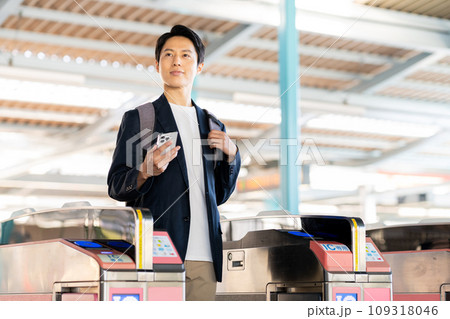 自動改札機のビジネスマン 撮影協力「京王電鉄株式会社」