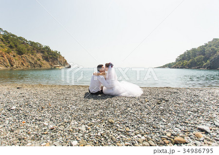 honeymoon couple travel sea and beach resort in
