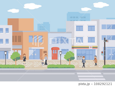 街中の背景と人物のイラスト