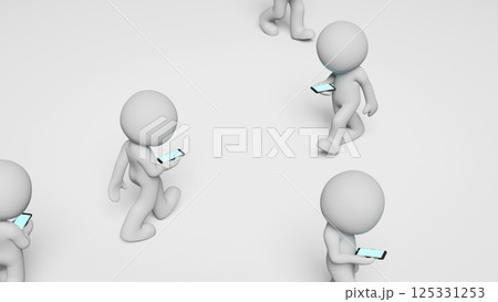 人混みの中、歩きスマホをするピクトグラムの3DCG