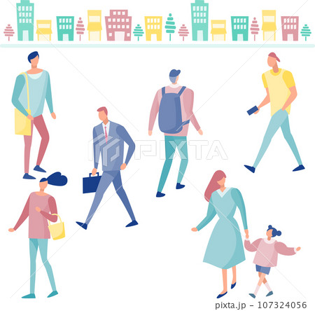街を歩く人々のイラストセット