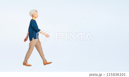 歩くシニア女性の全身写真