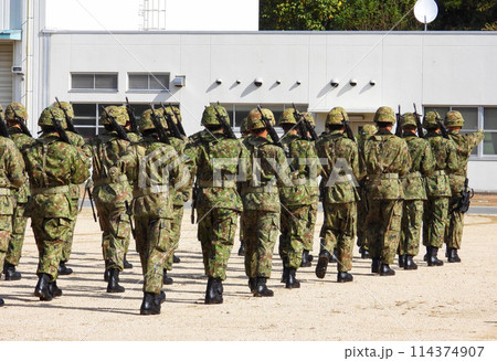 行進する陸上自衛隊の隊員