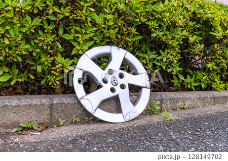 日本の横浜都市景観 アルミホイールの“落とし物”…車が通り過ぎる道路、歩道の脇に、なぜ…(※非演出)