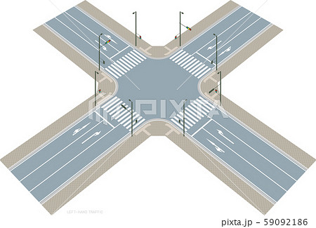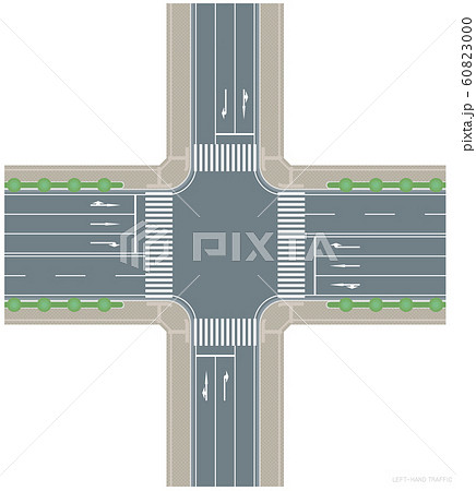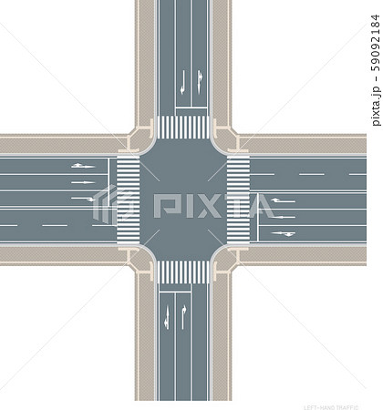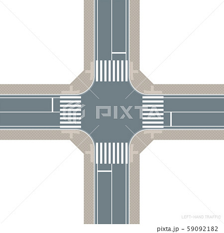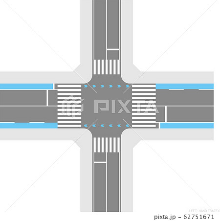 左側通行の片側一車線交差点のイメージ.ベクター素材