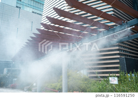 日本の東京都市景観7月13日。さくら坂の防犯カメラや渋谷サクラステージSHIBUYAタワーなどを望む