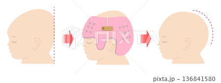 頭の形を治すためにヘルメットを被る赤ちゃんのイラスト