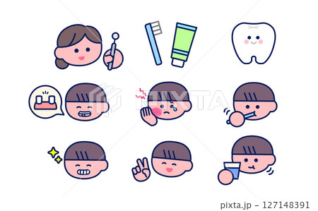 歯みがき/虫歯/歯が抜けた男の子のセット