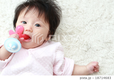 赤ちゃん (歯固め オモチャ おもちゃ ベビー 0歳 おしゃぶり コピースペース)