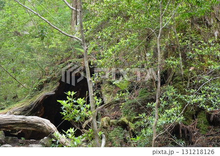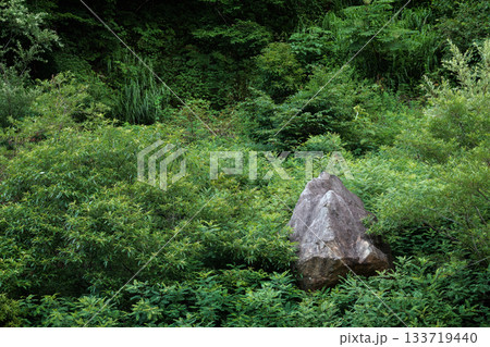 深緑に佇む巨岩