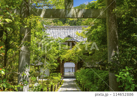 京都 槇尾山西明寺 新緑に包まれた表門