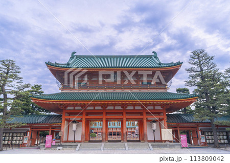 平安神宮 龍尾壇付近から見る外拝殿と満開の左近の桜