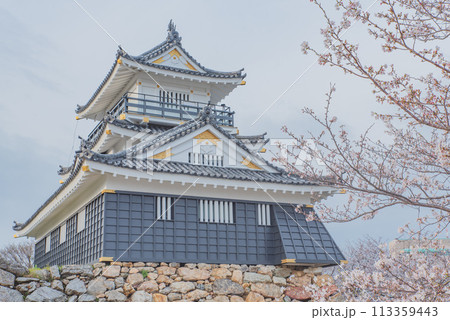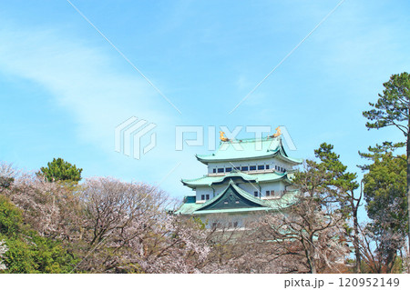 愛知県名古屋市、満開の桜と名古屋城の風景