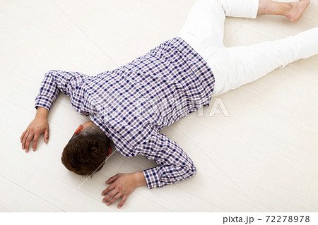 倒れ込む人のアイコン。転倒、夏バテ、失神、事故、飲み過ぎのイメージ。