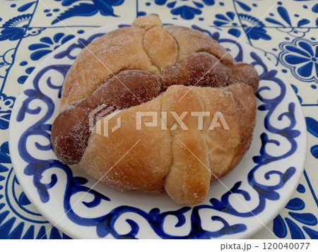 素焼きの皿に乗せたメキシコ「死者のパン」1個