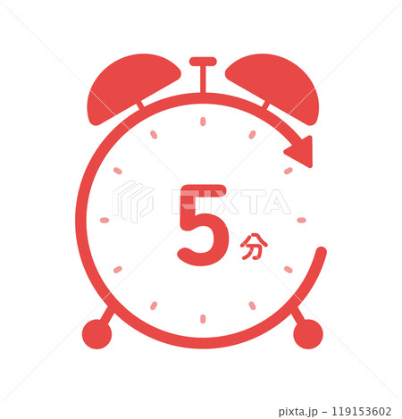 5分の文字とベルが付いたシンプルな置き時計のアイコン - 残り時間や5分間のタイマーのイメージ素材