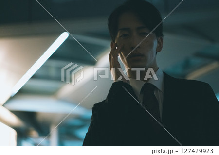 肌ストレスを感じている若い男性ビジネスパーソンの夜