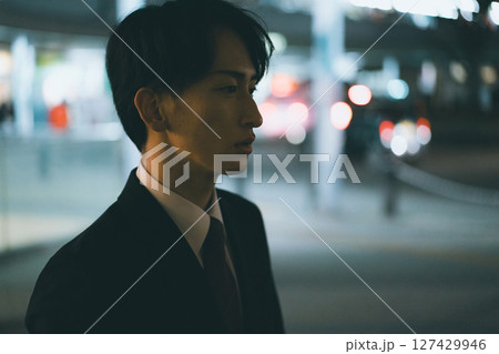 家路を急ぐ若い男性ビジネスパーソンの夜