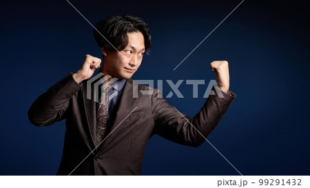 正拳突きをする日本人ビジネスマンの水墨画風イラスト