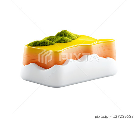 the image showcases a stylized depiction of a landscape layered on top of a geometric base