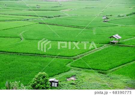 Green rice fields in the Green season
