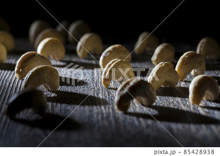 dried cashew nuts on a wooden table
