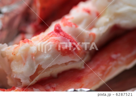 解凍中の塩茹でタラバガニの足 冷凍で直送されたカニ
