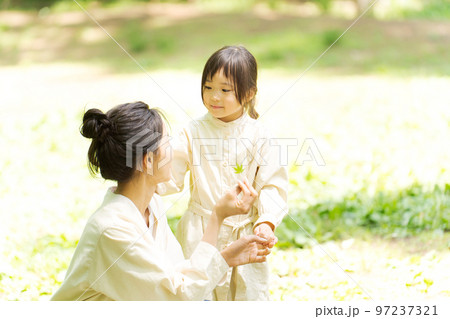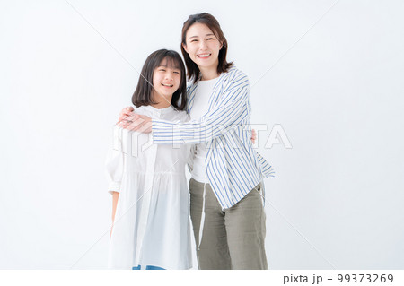 赤ちゃんを抱っこするふたりのお母さん 笑顔
