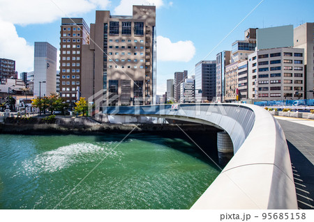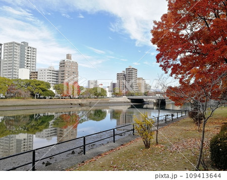 広島県広島市南区 京橋川に映る街並み 比治山本町から見た 鶴見橋